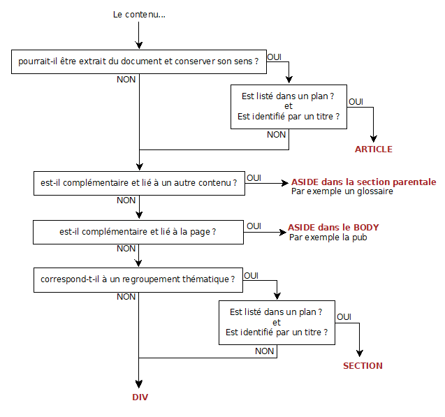 Ces nouveaux éléments sont là pour mieux structurer le document. Ils délimitent les différentes sections du document. Ces sections peuvent avoir des relations entre elles ou pas et on va utiliser ces éléments pour préciser tout cela.