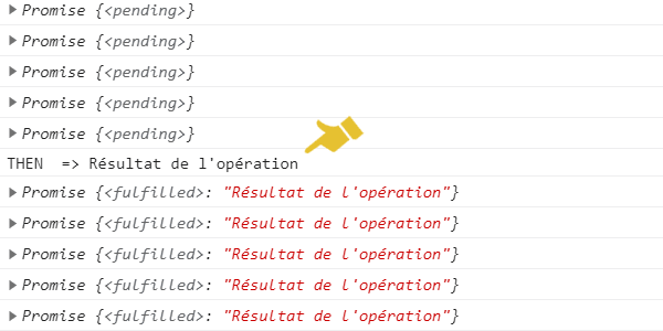 resolve avec la chaîne "Résultat de l'opération" en argument.La promesse passe de l'état